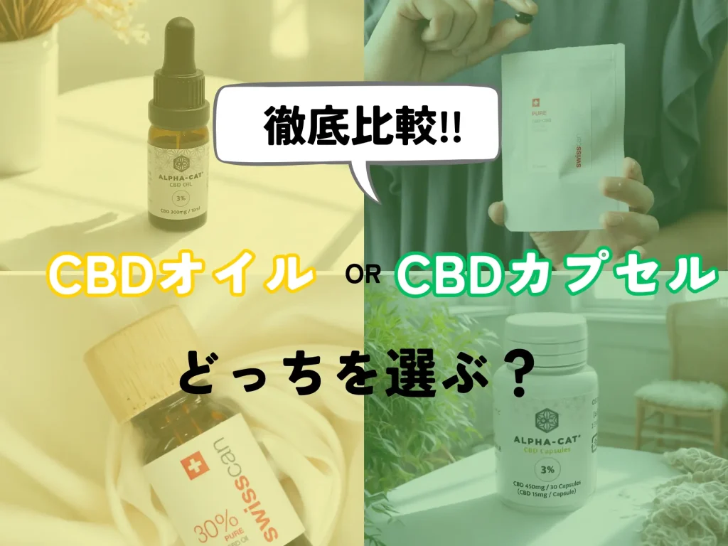 CBD製品には様々なタイプがありますが、特に代表的なのが「オイル」と「カプセル」です。これからCBDライフを始めようとする方にとって、「自分にはどっちが合っているの?」「初めてならどっち?」というのは、最初にぶつかる大きな疑問です。